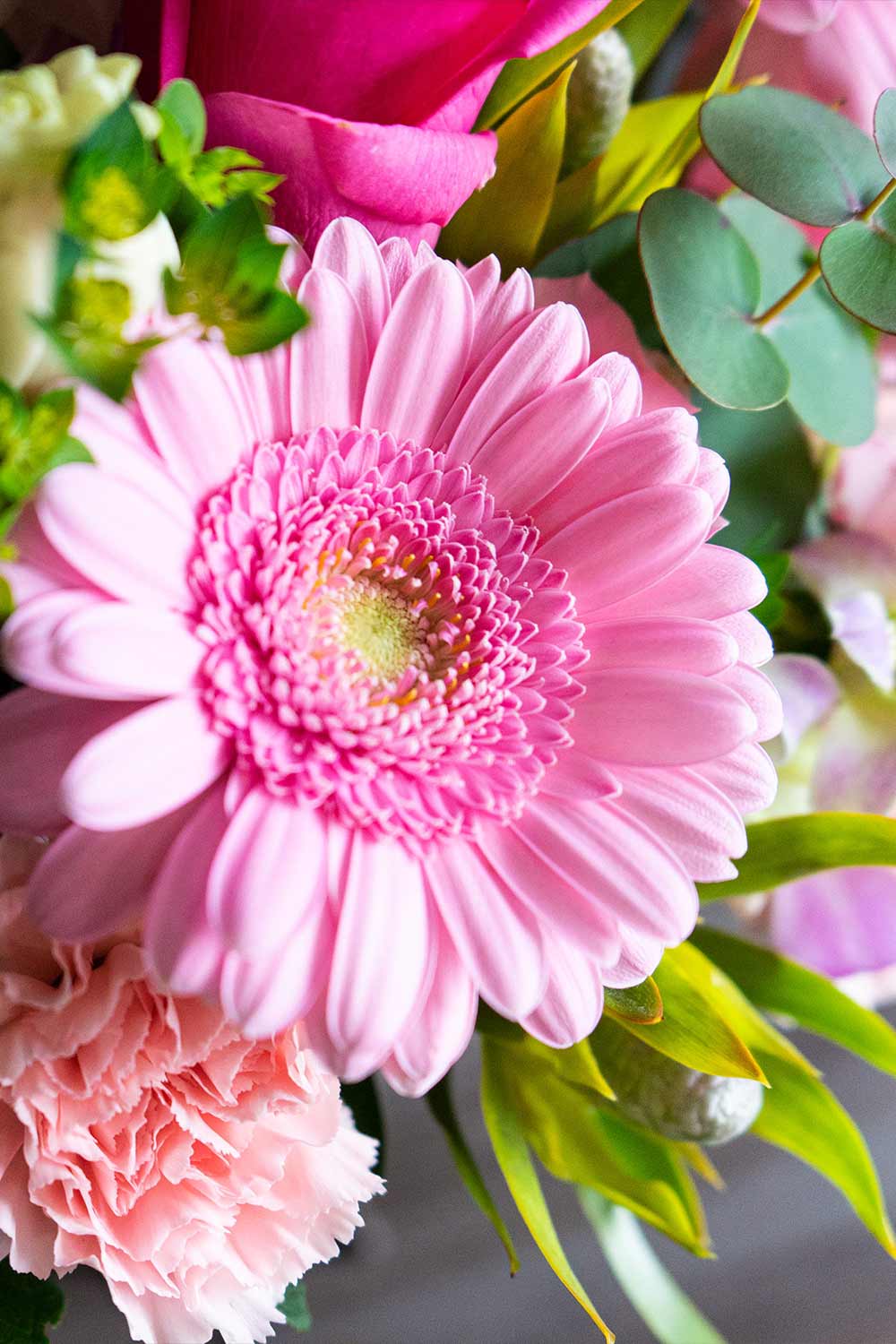 ピンクの色味のお花を揃えました。華やかで可愛らしい色合いで、女性へのギフトにぴったりです。