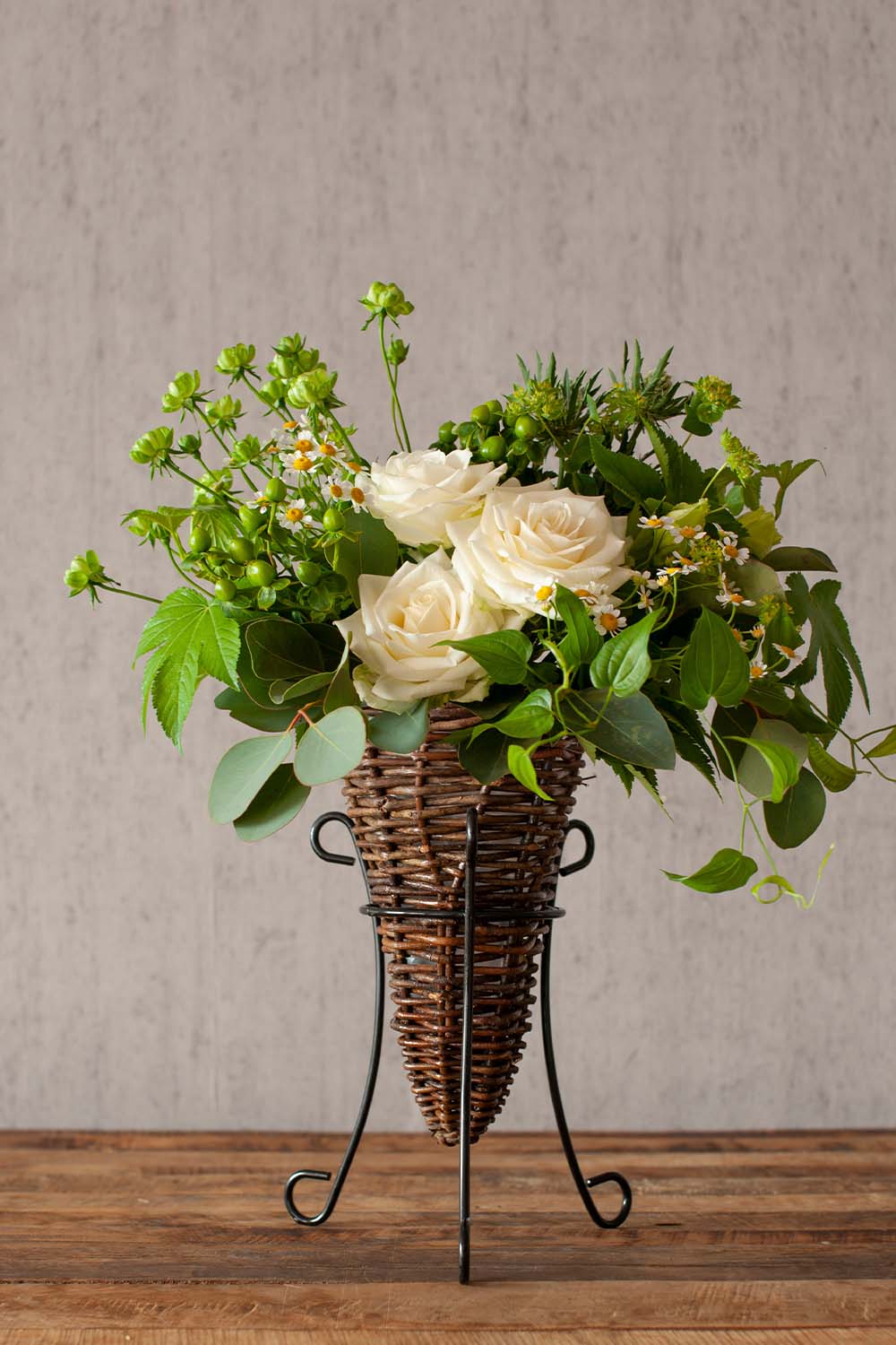 限られたスペースでも華やかにお飾りいただける、スタンド花風のアレンジメントです。