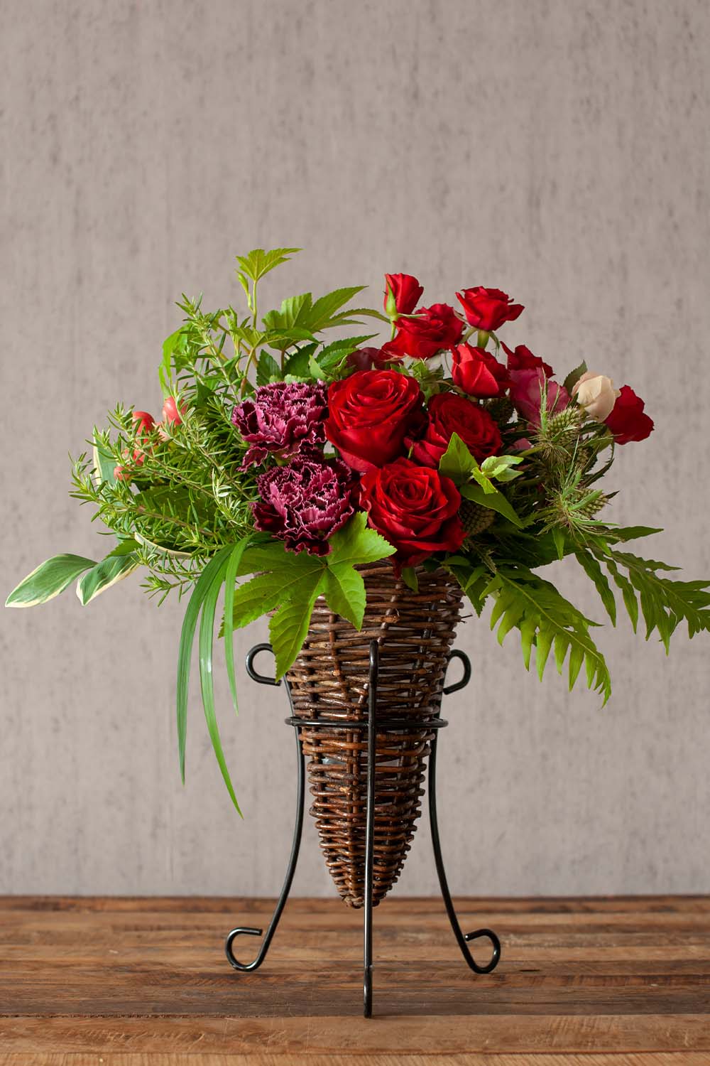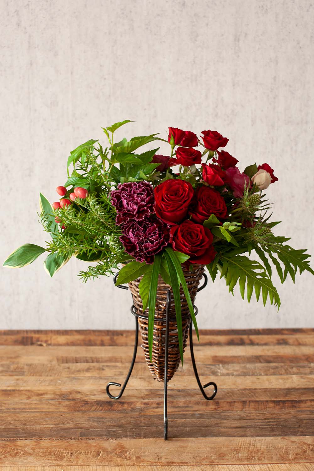 限られたスペースでも華やかにお飾りいただける、スタンド花風のアレンジメントです。